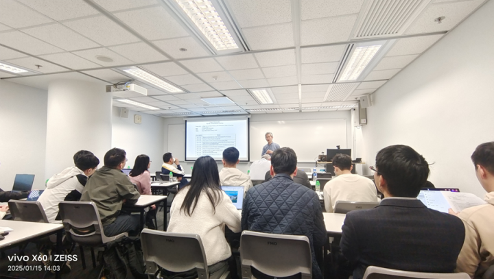 The computational modeling team, consisting of PC Prof Jidong Zhao, Co-PIs Profs. Hui SU, Zhenyu Yin, Alessandro Stocchino, Mengqian LU, Lin FU, and an invited Co-I Prof Jize Zhang, and their research postdocs and students totaling 32, met on 15 January 2025.